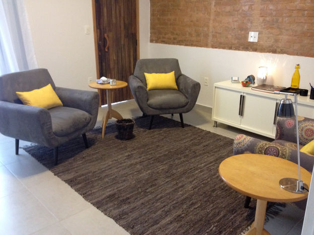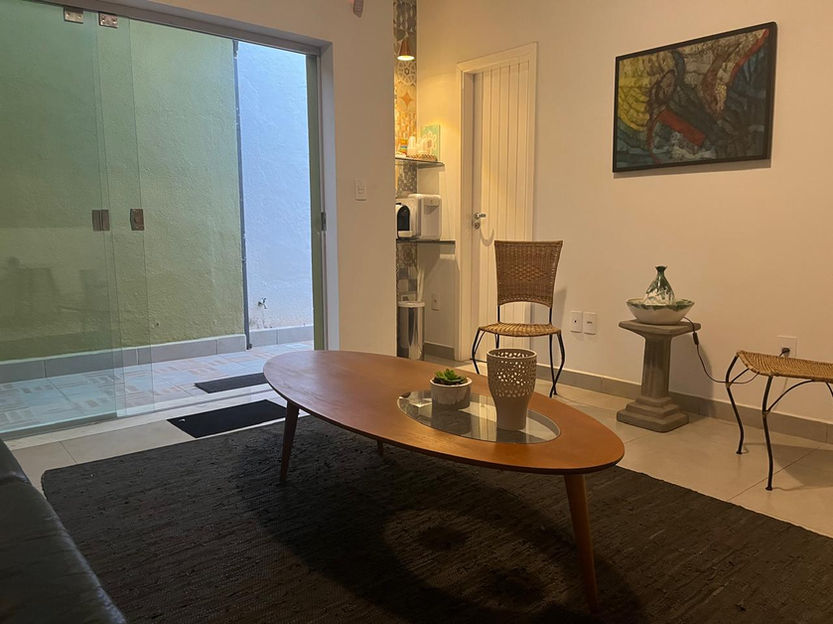 Inicialmente pensado para meus atendimentos em psicoterapia, o espaço cresceu e hoje abriga outros profissionais da saúde e bem-estar. São quatro salas planejadas para quem busca autonomia e independência, com estrutura completa para receber pacientes com conforto.